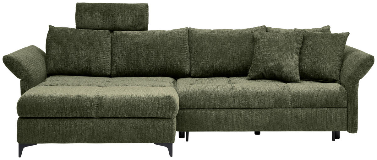 UGAONA GARNITURA maslinasto zelena  - maslinasto zelena/crna, Konvencionalno, tekstil/metal (291/153cm) - Hom`in
