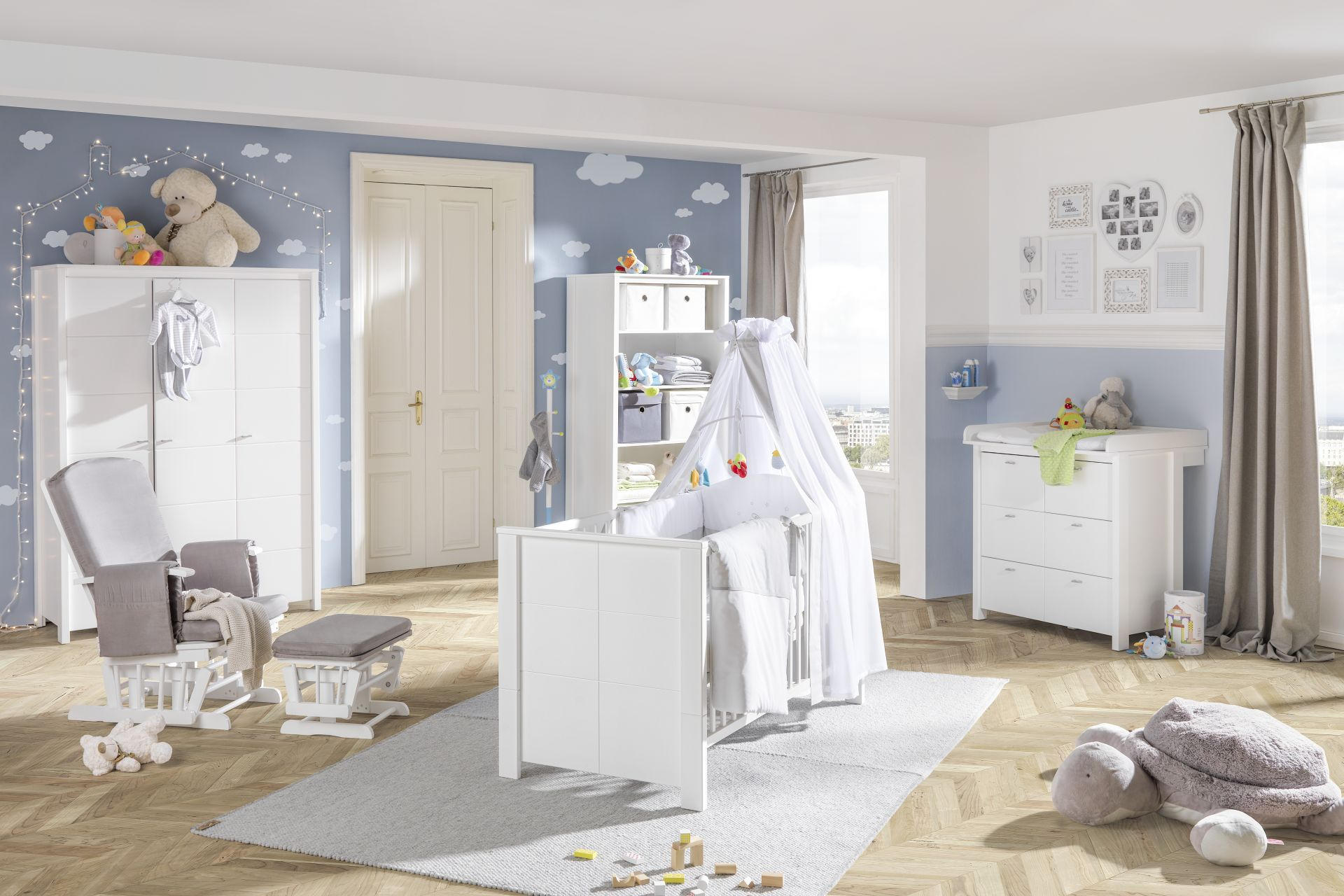 Udobno, lepo, praktično i pre svega sigurno: Ovo je kombinacija za idealnu bebi sobu. Sa kompletnim setom za bebi sobu i sa najboljim odnosom cene i kvaliteta koji su usklađeni u dizajnu i materijalu, imate sve što je potrebno za vašu bebu. U Lesnini XXXL individualno odabran nameštaj za baby sobu možete planirati po sopstvenom ukusu. Krevetac za bebe je svakako u svakoj baby sobi obavezan, a uklanjanjem rešetki može vrlo praktično da „raste“ sa vašom bebom. Posebno ste blizu vašeg malog blaga sa pomoćnim krevetom koji stoji direktno pored vašeg sopstvenog kreveta. Osim toga, u svakoj bebi sobi trebalo bi da postoji i komoda ili sto za povijanje. Komode za previjanje imaju i puno prostora za odlaganje za pelene, proizvode za negu i odeću za presvlačenje.